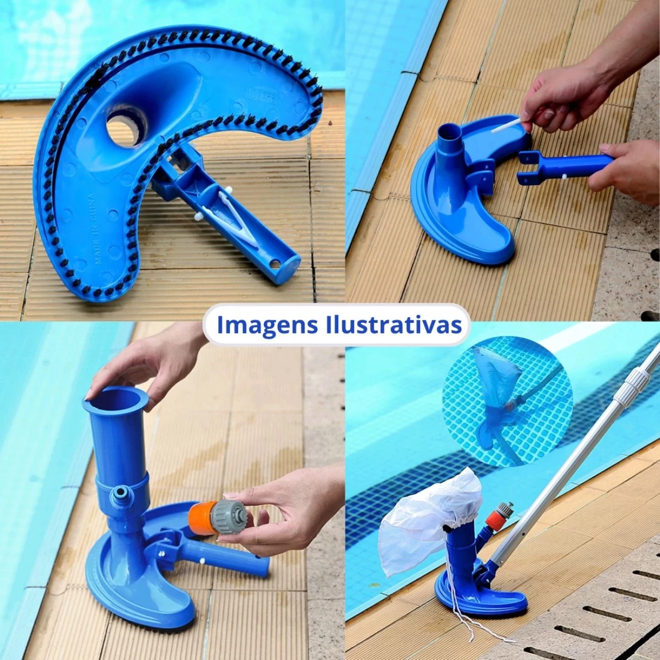 :: Indicação e Uso: Ideal para limpeza prática e eficiente, removendo sujeiras e resíduos depositados no fundo.; O sistema venturi a vácuo facilita a sucção da água e das impurezas sem necessidade de bomba elétrica.; Acompanha escova, que auxilia na remoção de sujeiras mais aderidas, garantindo uma manutenção rápida e eficaz da piscina.