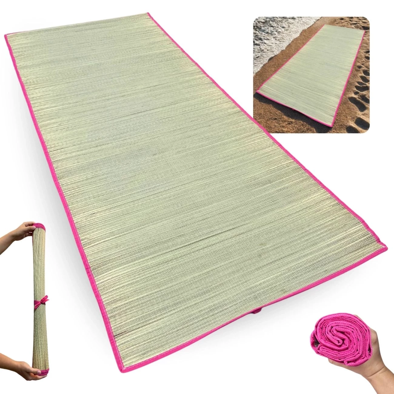 Esteira de Praia em Palha Bel Rosa 1,80m X 70cm Passeio Parque e Piquinique