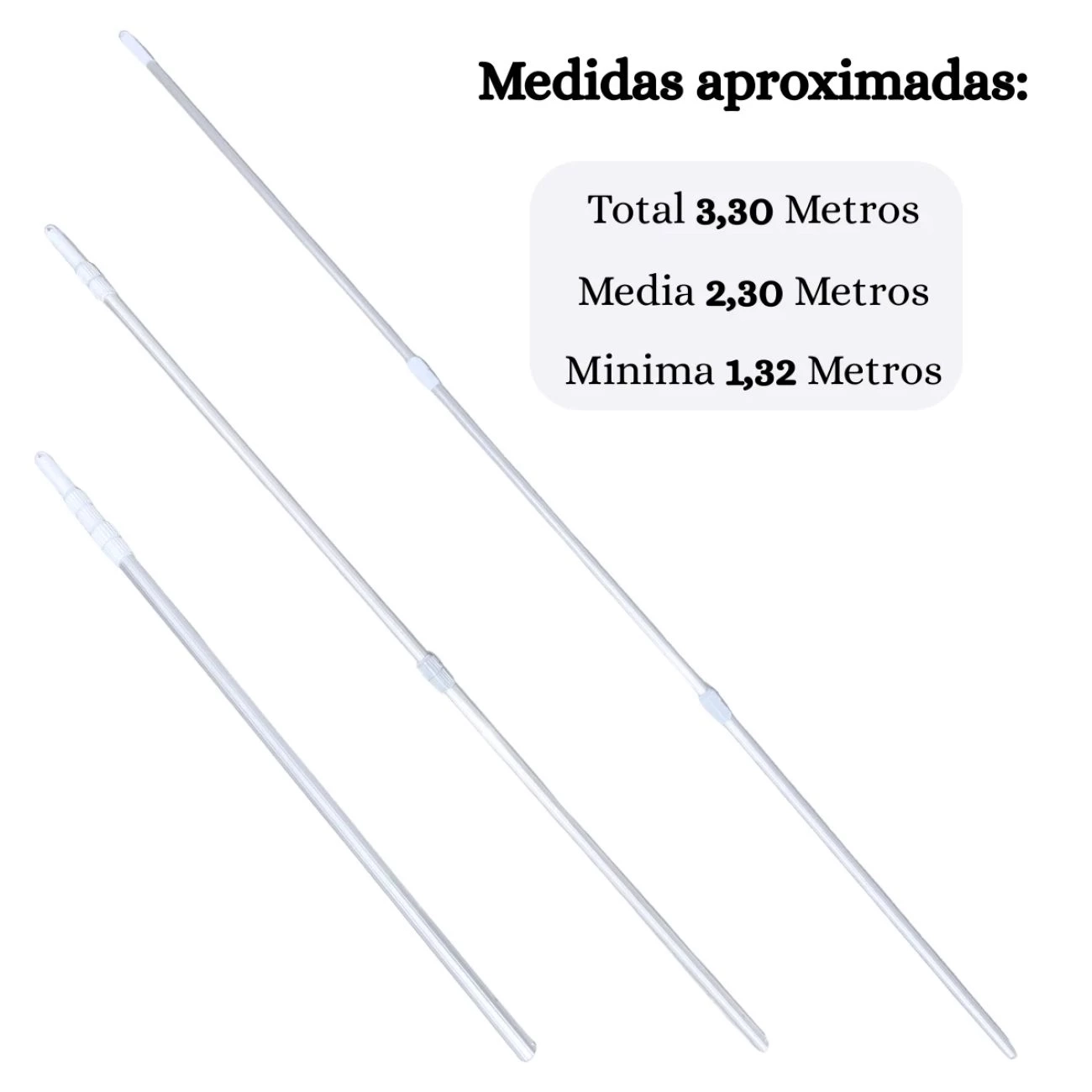 Haste Retrátil Cabo Extensor Telescópico 3,30 Metros em Alumínio para Limpeza Piscina
