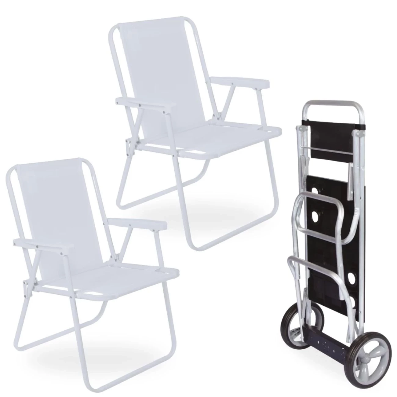 Kit 2 Cadeiras de Praia Brancas + Carrinho com Avanço em Aluminio Mor