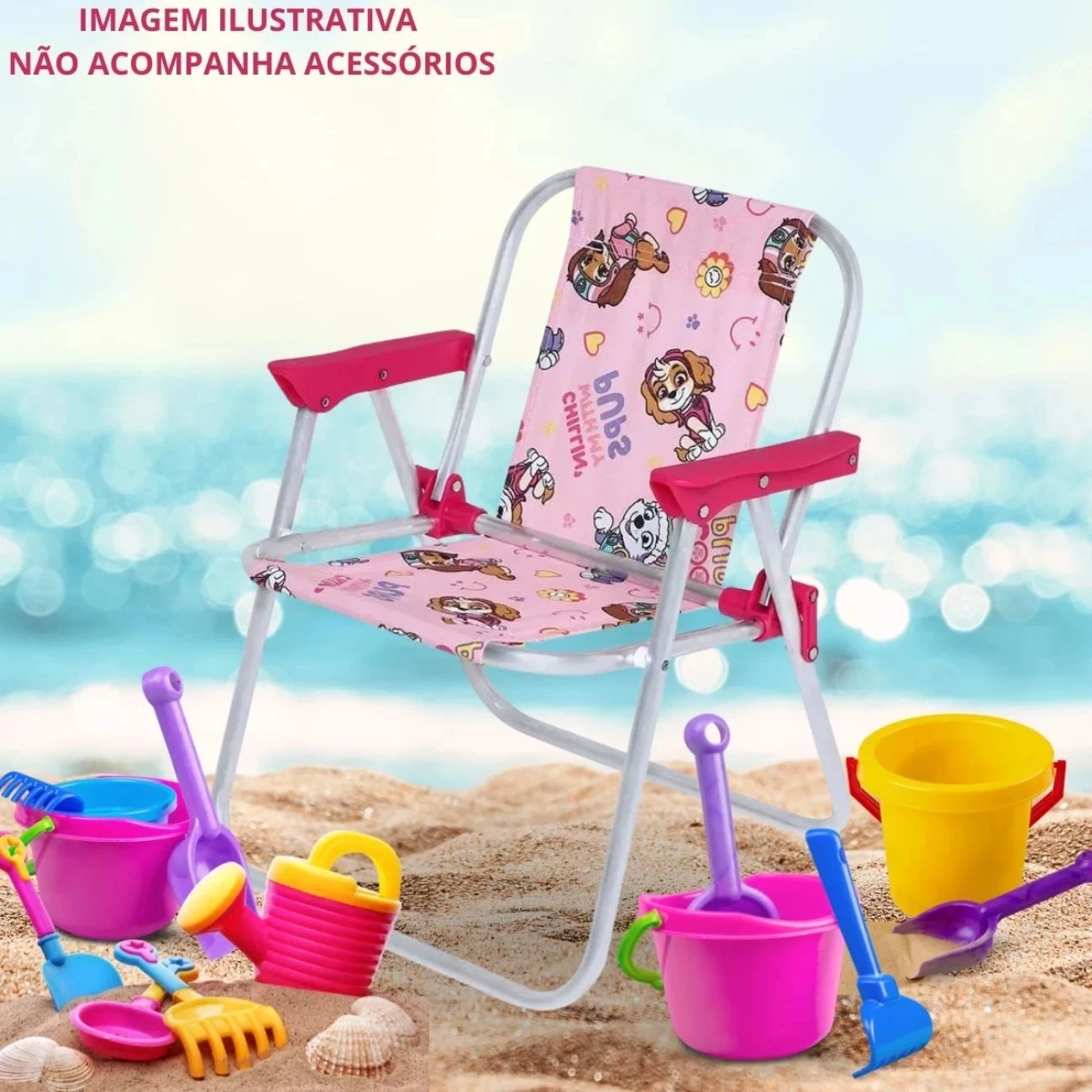 :: 2 Unidade Cadeira de Praia Infantil Patrulha Canina Rosa Bel