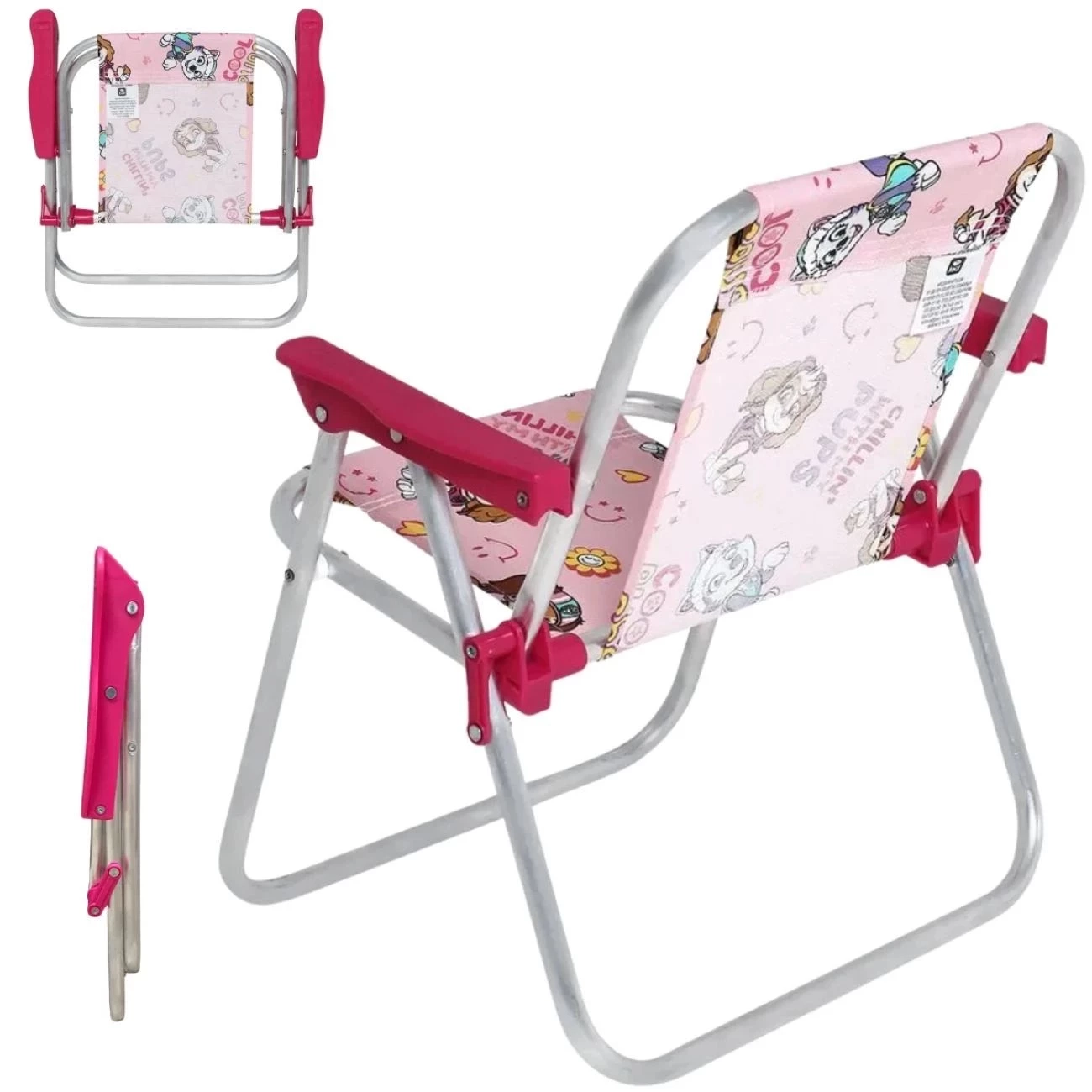 Kit 2 Cadeiras de Praia Infantil da Patrulha Canina Rosa em Aluminio Dobravel Bel