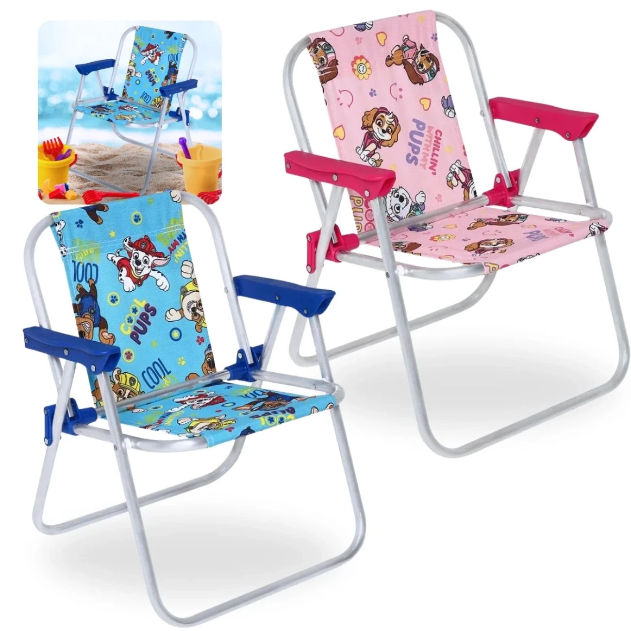 Kit 2 Cadeiras de Praia Infantil Rosa e Azul da Patrulha Canina em Aluminio Dobravel Bel