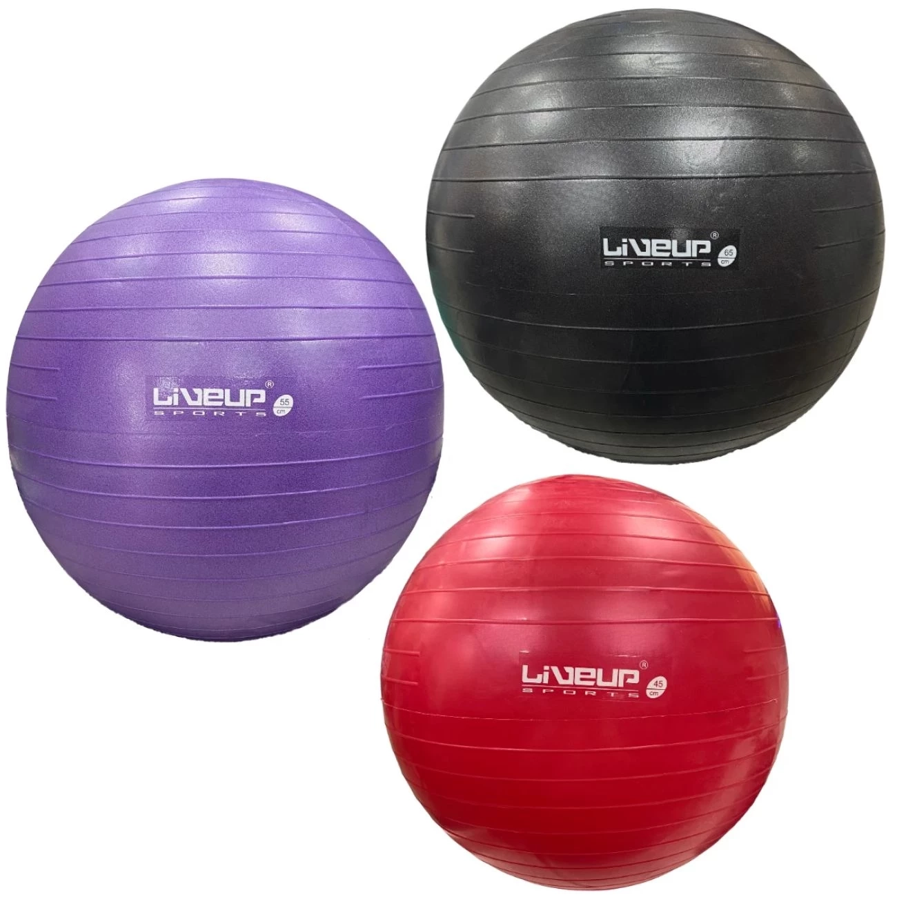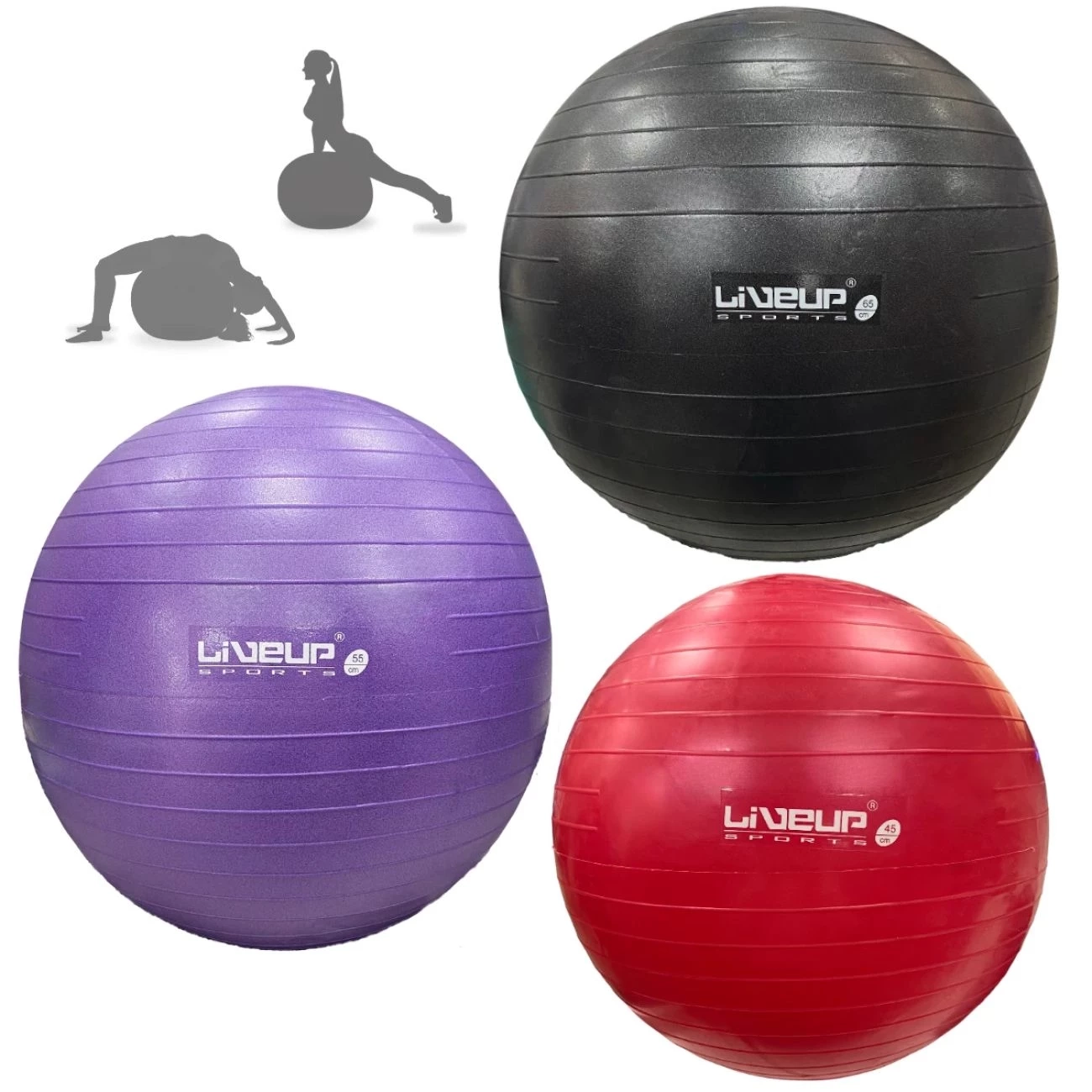Kit Bolas Premium Yoga Vermelha 45 Cm + Roxa 55 Cm + Preta 65 Cm + Bomba Inflar Academia e Pilates