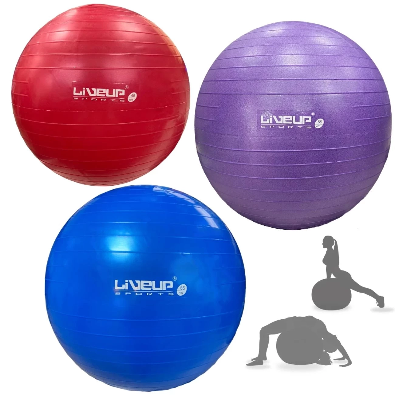 Kit Bolas Suíças Treino Vermelha 45 Cm + Roxa 55 Cm + Azul 65 Cm + Bomba para Inflar Pilates Yoga