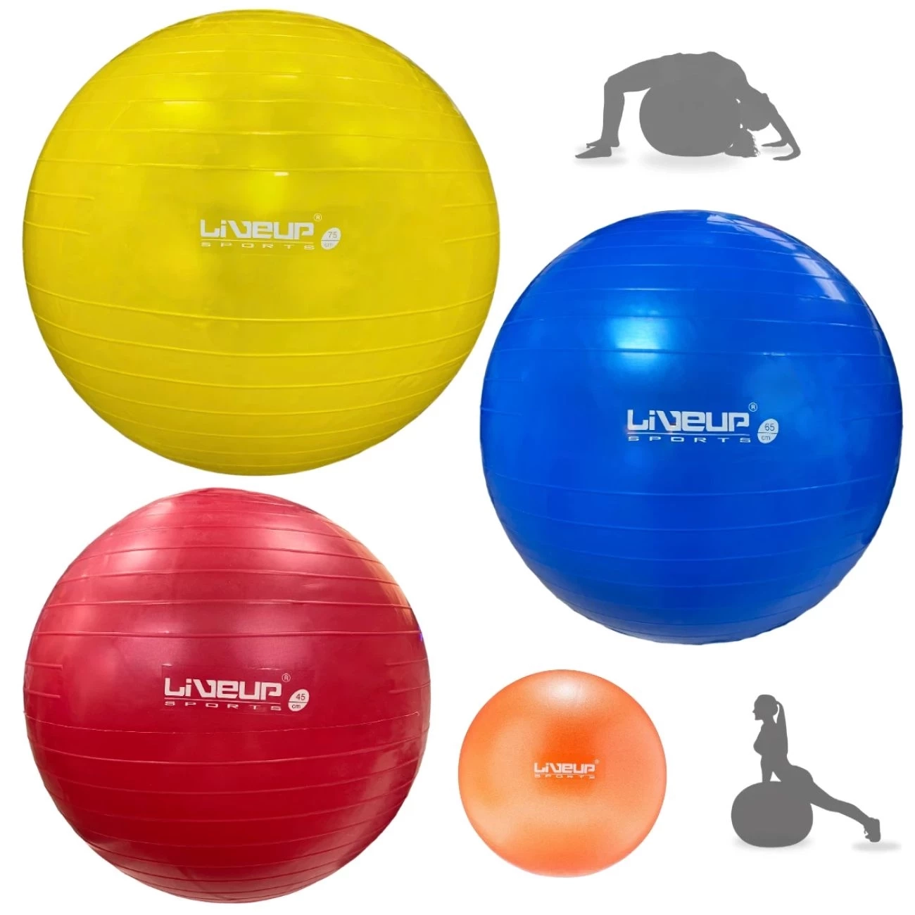 Kit Bolas Treino Vermelha 45 Cm + Azul 65 Cm + Amarela 75 Cm + Overball 25 Cm + Bomba Inflar Pilates