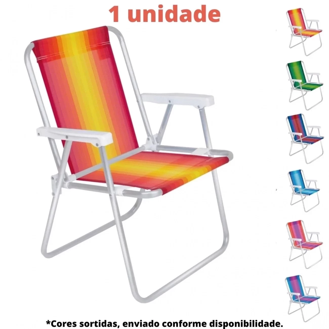 Especificações Cadeira de Praia Alta Alumínio Cores Sortidas: