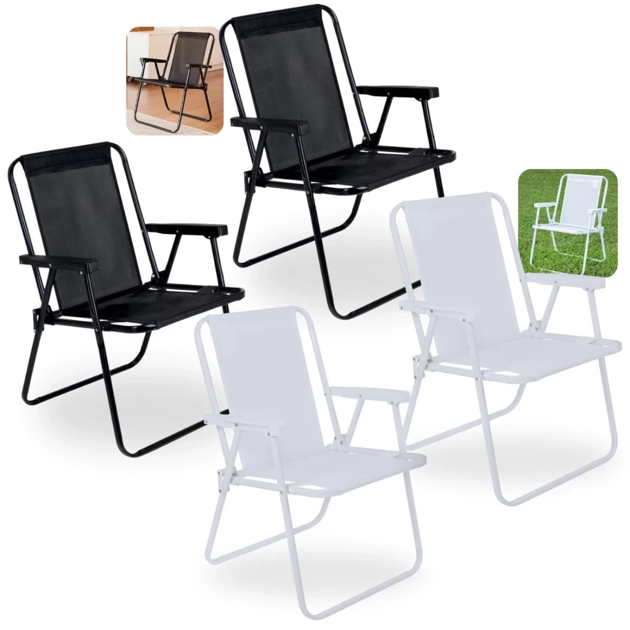 Kit Cadeiras de Praia Alta Dobraveis 2 Brancas + 2 Pretas em Aço para Casa Jardim Parque e Pesca