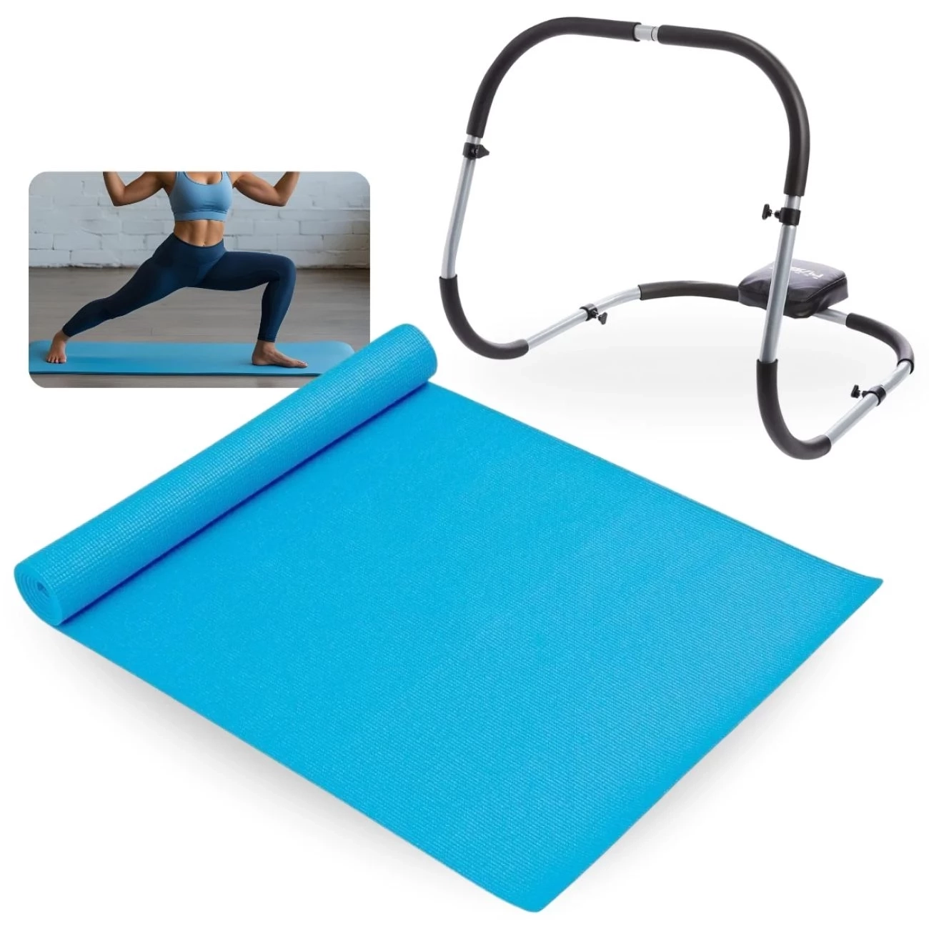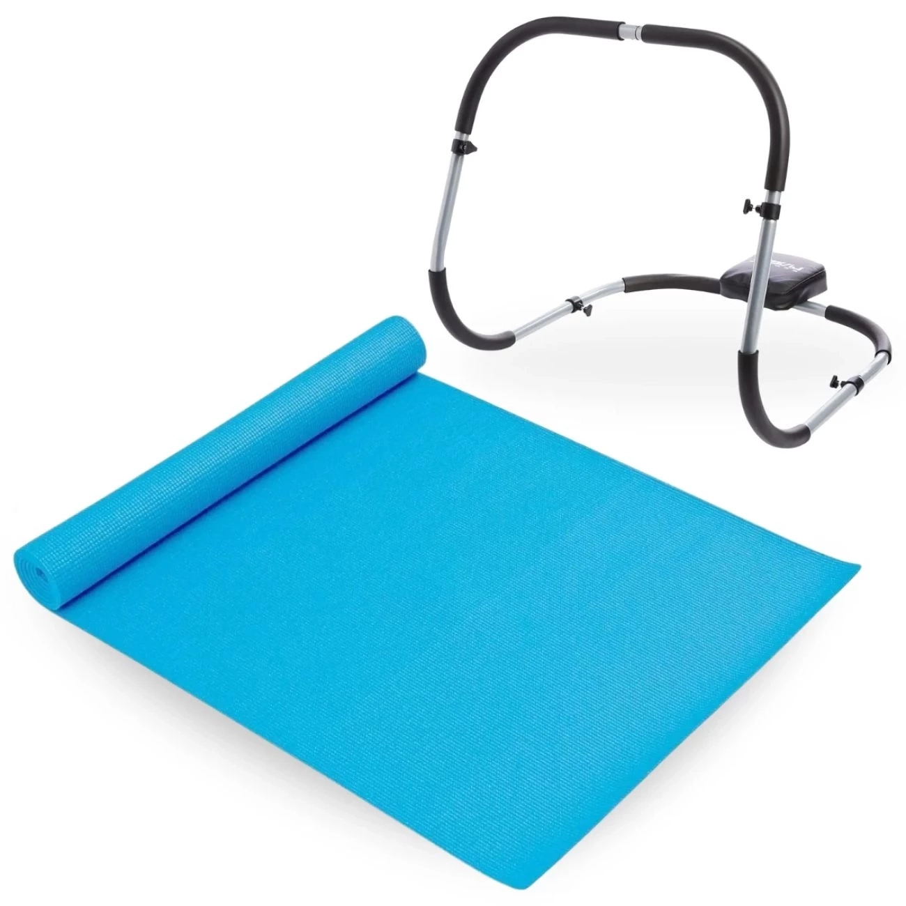 Kit Colchonete 1,73m Azul Tapete para Yoga e Ginástica + Aparelho Abdominal Treino Musculação Tonificação