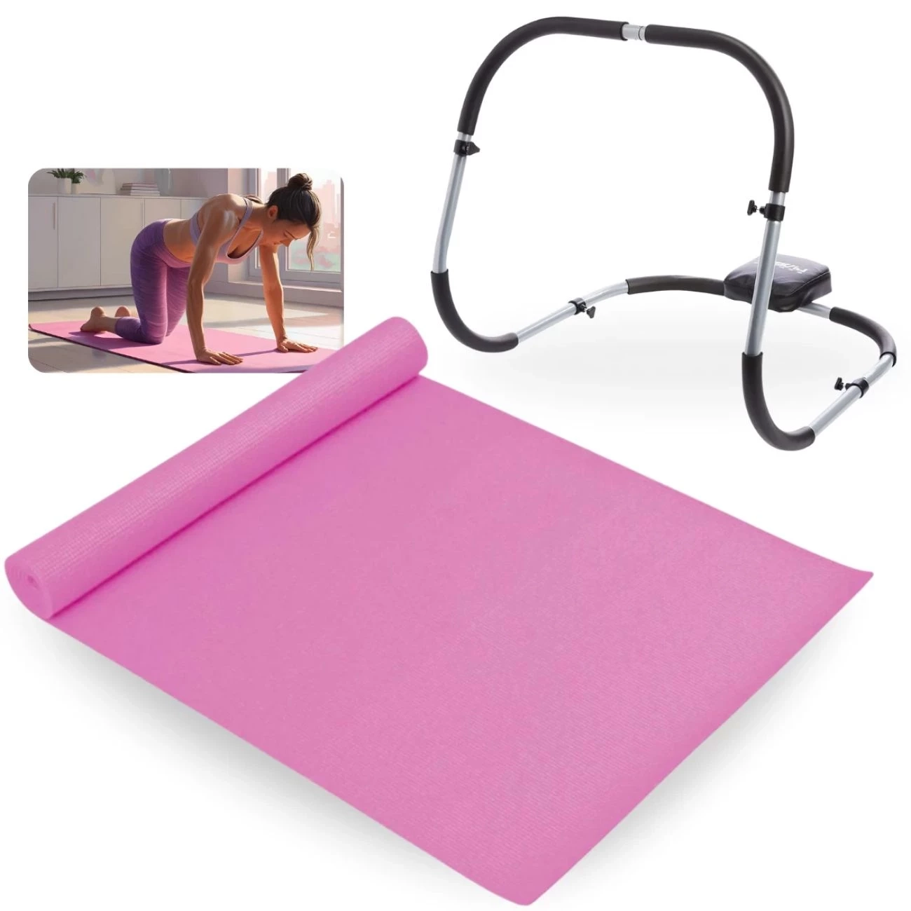 Kit Colchonete Tapete para Yoga Ginástica Eva Rosa + Aparelho Abdominal Treino Musculação Tonificação