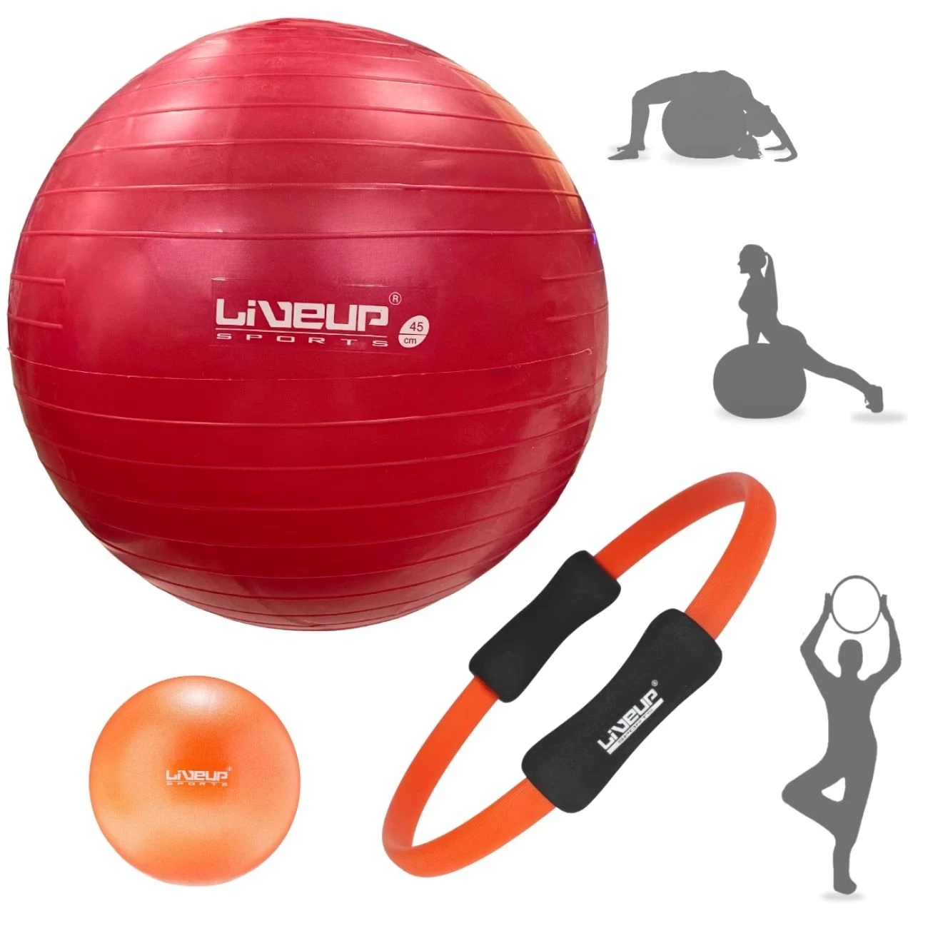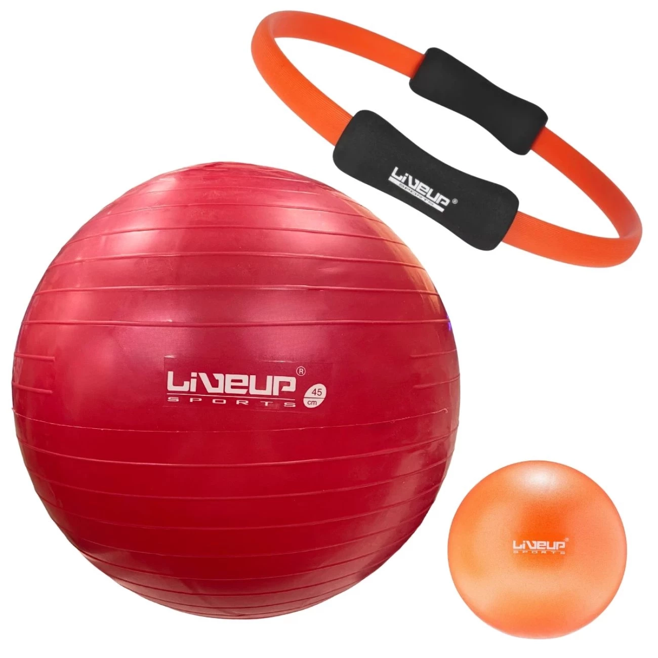 Kit Funcional Bola Premium Vermelha 45 Cm + Overball 25 Cm + Arco Fortalecedor + Bomba Inflar Treino