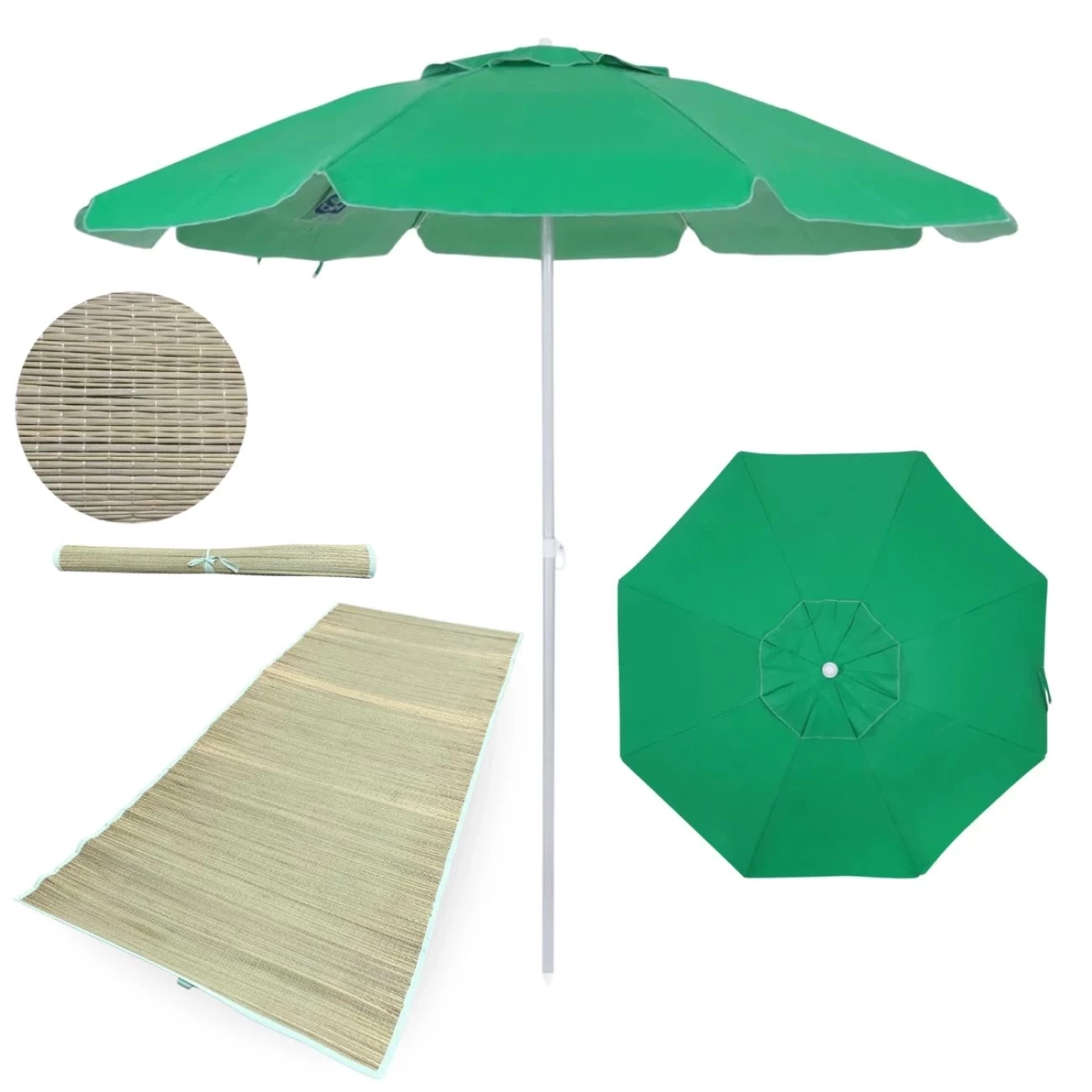 Kit Guarda-sol 1,60 Mts Verde em Bagum + Esteira de Praia Verde em Palha Passeios Piquinique