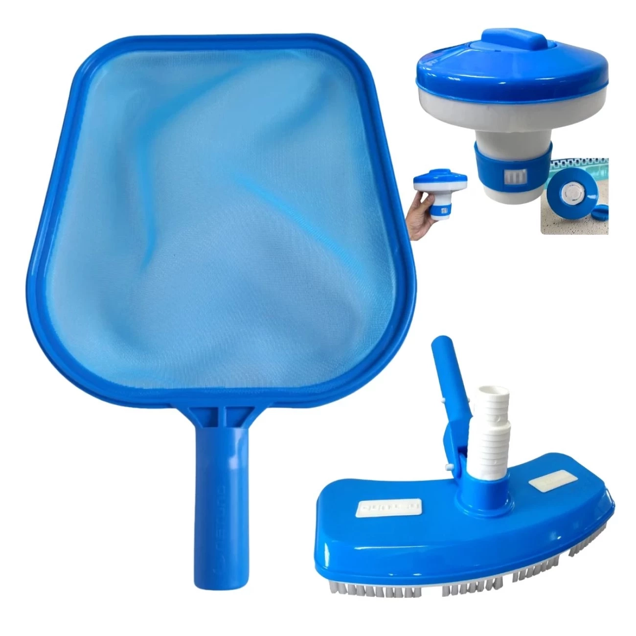 Kit Limpeza de Piscina Mini Flutuador + Peneira + Aspirador para Piscina