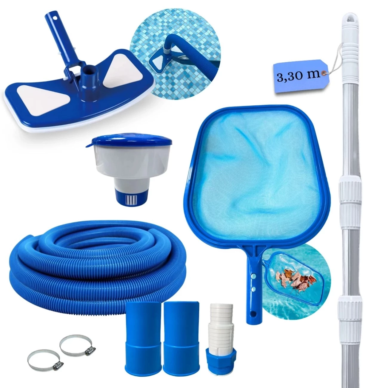 Kit Limpeza de Piscina Peneira + Mangueira 6 M 38 Mm + Haste 3,30 M + Aspirador + Flutuador