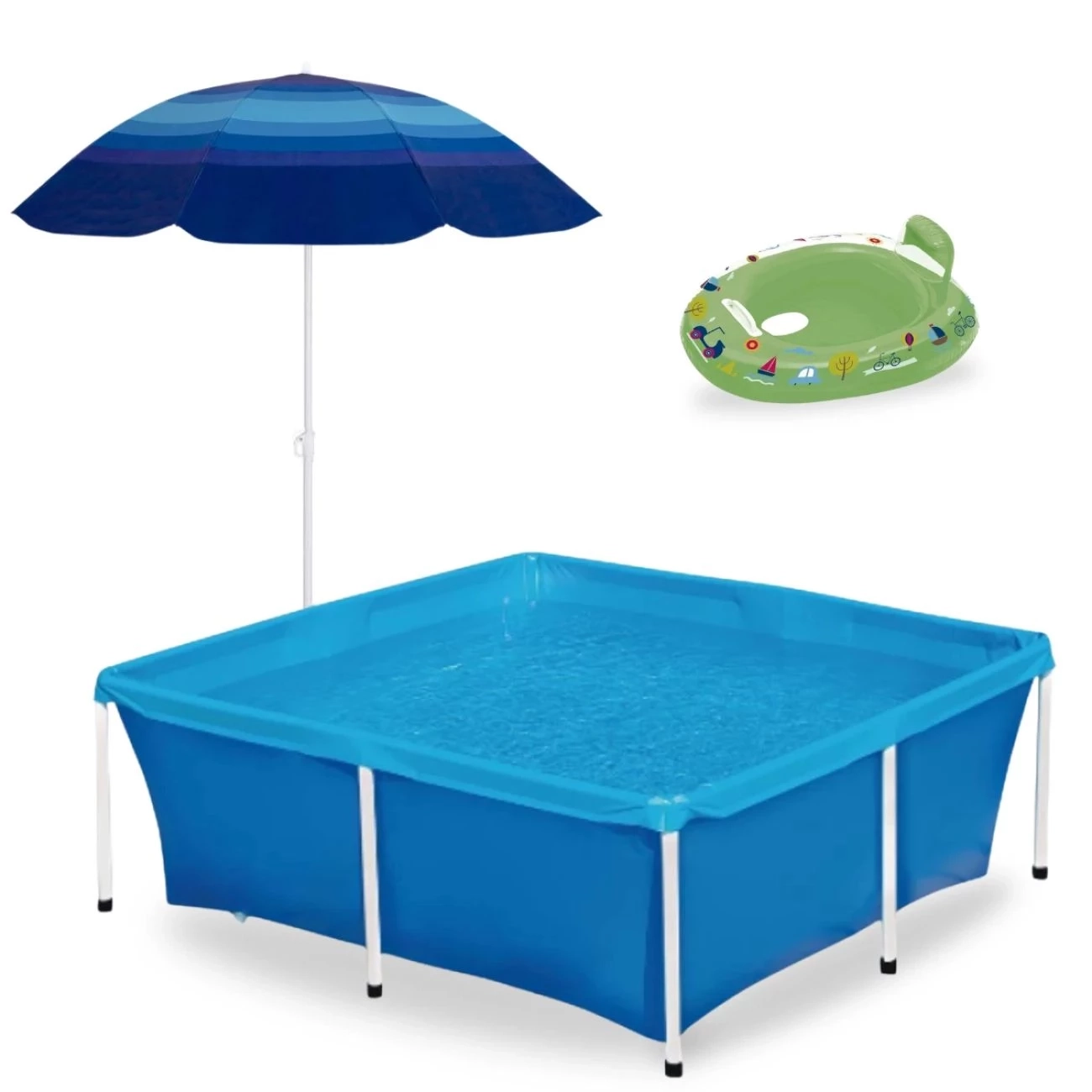 Kit Piscina Estrutural 2000 Lts Mor + Guarda Sol 1,50 M 70fps+ Boia Fralda Verde para Até 1 a 2 Anos