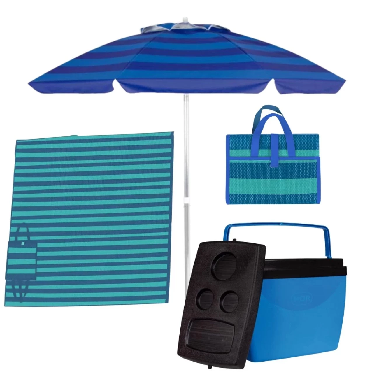 Kit Praia Guarda Sol + Esteira para Casal e Caixa Termica 34l