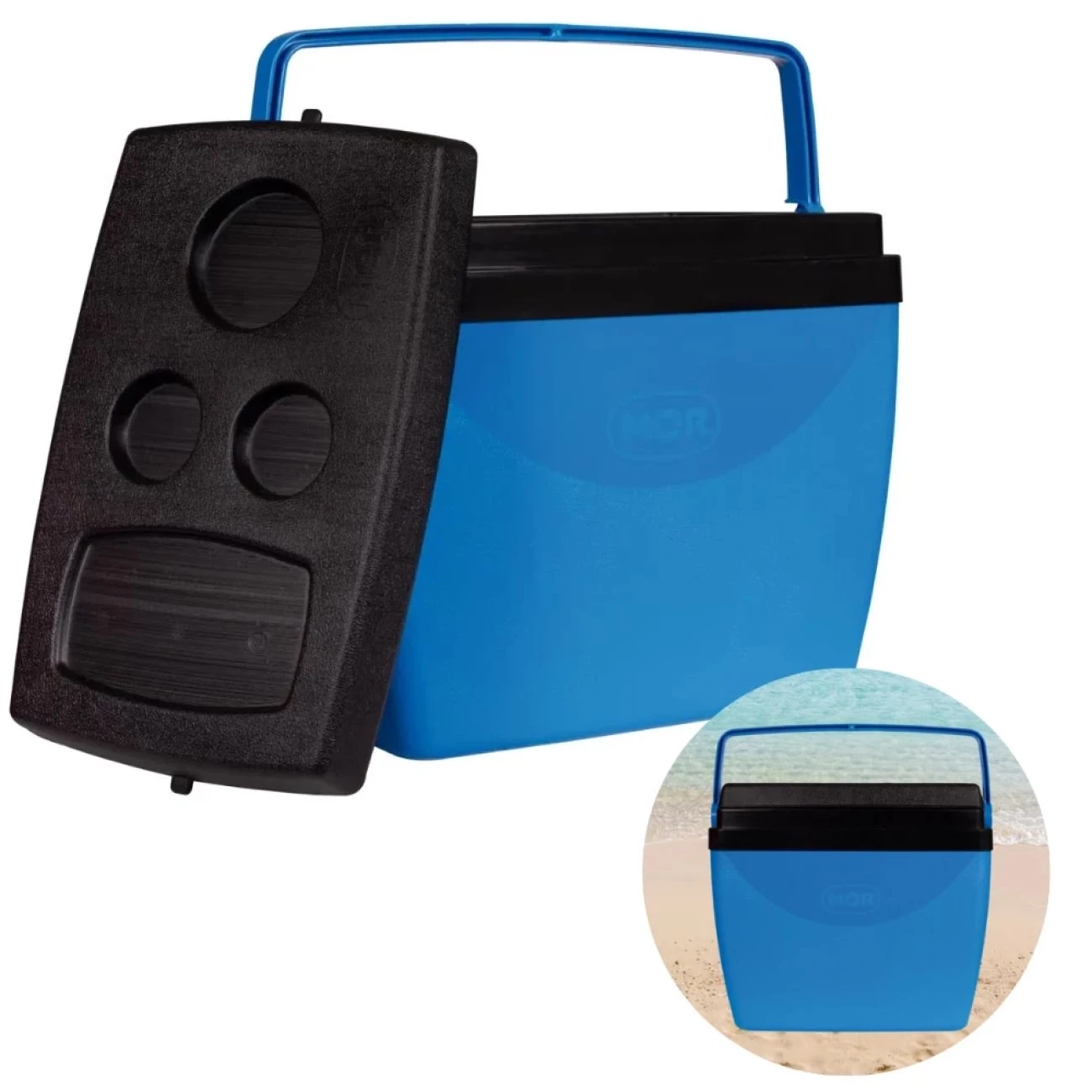 Especificações Caixa Térmica Cooler com Alça Mor 34 Litros Azul e Preto: