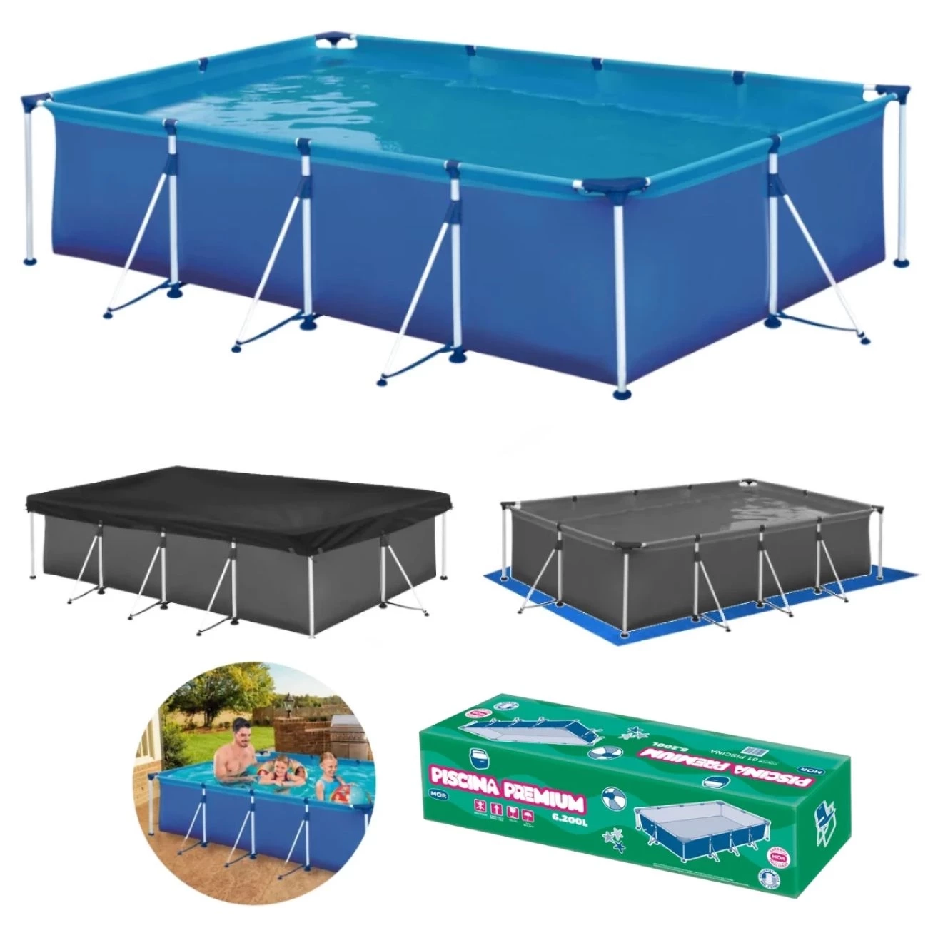 Piscina 6200 Litros Mor Premium Retangular com Capa e Forro de Proteção