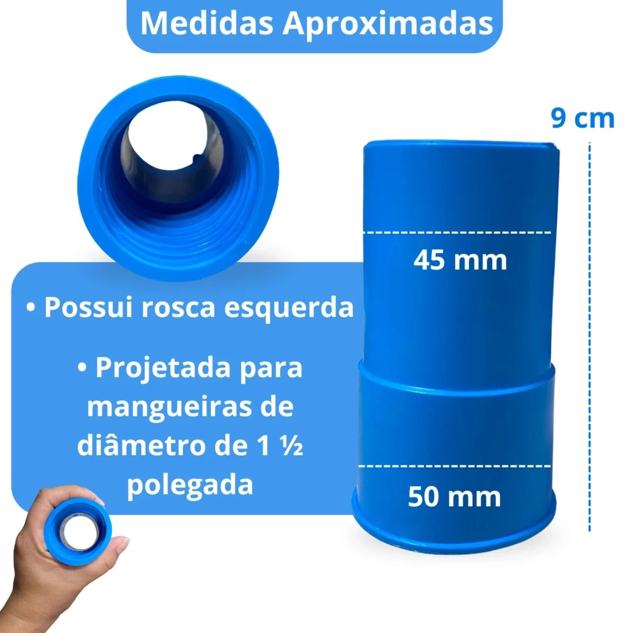 - Utilize para conectar a mangueira de aspiração ao aspirador ou ao skimmer, garantindo um acoplamento seguro e durável, com vedação eficiente para evitar vazamentos e manter o desempenho ideal do sistema de sucção.
